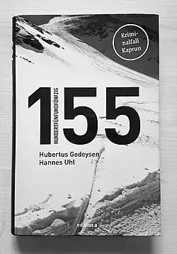 155 Kriminalfall Kaprun (englischer Titel: The Kaprun Cover-Up) ist ein auf Deutsch und Englisch erhältliches Sachbuch des österreichischen Journalisten Hannes Uhl und des deutschen Journalisten Hubertus Godeysen.[1] Der 2014 erschienene Titel befasst sich mit den Hintergründen und Ermittlungen zur juristischen Aufarbeitung der Brandkatastrophe der Gletscherbahn Kaprun 2.