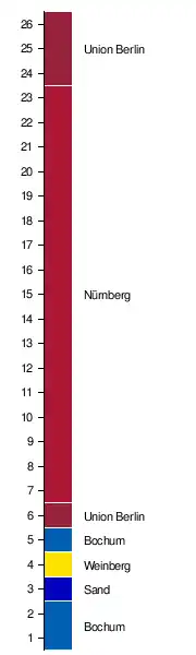 Union Berlin stellte in den Heimspielen gegen den Hamburger SV (5.508), den FC Bayern München II (6.181), den FC Ingolstadt 04 (6.676), Borussia Mönchengladbach (14.047) und den FSV Gütersloh (20.132) neue Zuschauerrekorde in der zweiten Bundesliga auf.[10] Union stellte mit 93.464 Zuschauern rund 64 Prozent der gesamten Saisonzuschauerzahl. Unions Zuschauerschnitt von 7.190 lag höher als der jedes Bundesligisten 2024/25.[11]