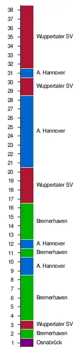 | 1. | Arminia Bielefeld | 3:1 | 2:0 | 3:1 | 5:0 | 3:0 | 2:0 | 2:0 | 2:2 | 2:1 | 6:0 | 7:1 | 4:1 | 3:0 | 5:1 | 5:0 | 5:1 | 4:0 | 11:0 | 5:1 | |