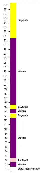 | 14. | SpVgg Fürth | 2:1 | 2:0 | 1:1 | 3:1 | 2:4 | 0:0 | 2:0 | 8:1 | 0:0 | 1:2 | 1:1 | 2:2 | 3:1 | 2:2 | 2:1 | 0:0 | 2:0 | 2:1 | 2:2 | |