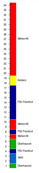 | 9. | Rot-Weiß Oberhausen | 1:0 | 2:1 | 0:3 | 1:1 | 0:4 | 0:3 | 2:1 | 3:2 | 1:3 | 2:1 | 1:1 | 1:0 | 0:0 | 2:0 | 0:0 | 2:1 | 0:1 | |