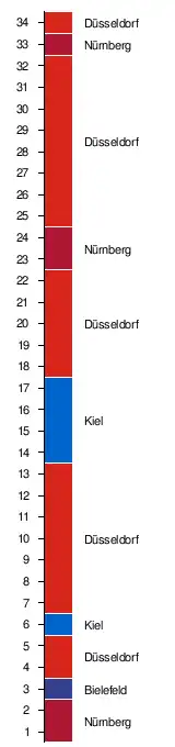 | Fortuna Düsseldorf | 3:0 | 1:0 | 2:2 | 3:2 | 1:3 | 2:2 | 2:1 | 1:1 | 1:2 | 1:0 | 0:2 | 2:0 | 2:1 | 4:2 | 3:1 | 1:1 | 1:0 | |