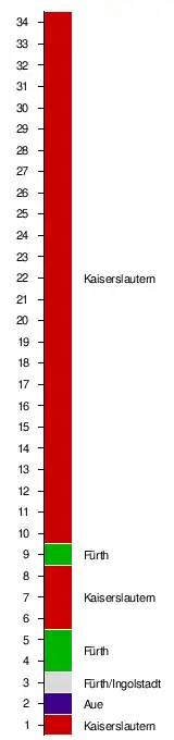 | SpVgg Greuther Fürth | 0:1 | 1:1 | 2:1 | 2:1 | 1:0 | 1:0 | 4:0 | 1:1 | 2:1 | 3:1 | 1:3 | 2:1 | 2:1 | 1:2 | 2:2 | 0:0 | 1:2 | |