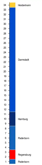 | Relegation ↓ | Arminia Bielefeld (0:4 und 1:2 gegen den SV Wehen Wiesbaden) |