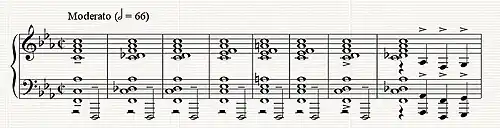 Das Klavier beginnt solistisch mit acht Akkorden, die gleichsam Glockenschlägen wie aus der Ferne tönen und sich in der Lautstärke allmählich steigern. Um diese wie vorgesehen spielen zu können, braucht man große Hände, weil die Akkorde der linken Hand in Dezim-Intervalle eingebunden sind. Rachmaninow selbst, obwohl er große Hände besaß, spielte allerdings in seiner Tonaufnahme von 1929 in allen Akkorden ab dem zweiten das große F wie einen Vorschlag; insofern hat auch diese Variante, die für kleinere Hände geeignet ist, Gültigkeit.