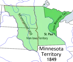 - 1849: Frühere Gebiete der aufgelösten Territorien Iowa und Wisconsin werden mit weiteren Gebieten östlich des Missouri River zum Minnesota-Territorium zusammengefasst.