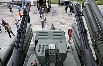 Die 2A38 wird paarweise, jeweils eine links und rechts, am Turm von Flugabwehrsystemen eingesetzt.