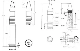 | M929 | Wolfram-Unterkaliber-Leuchtspurpfeilgeschoss (APFSDS-T)[4] | ? | - | ? | Belgischer Hersteller; Durchschlagsleistung: 55 mm RHA in 1000 m Entfernung, 45 mm auf 2000 m.[3] |