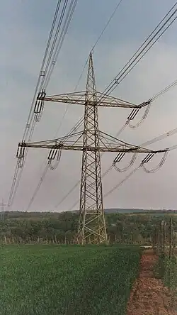 Das Mitte der 1950er Jahre geplante Wasserkraftprojekt Yougelexport, bei dem Wasserkraft in Jugoslawien den europäischen Markt mit elektrischer Energie beliefern sollte, war dann eines der ersten Vorhaben für die großflächige Anwendung eines neuen Höchstspannungsnetzes. Verhandlungen der Internationalen Elektrotechnischen Kommission (IEC) legten für dieses Netz europaweit 380 kV als Standard fest, was einer Betriebsspannung von 400 bis 420 kV entspricht.[11] Das Projekt wurde aus politischen Gründen allerdings zu keinem Zeitpunkt mehr verwirklicht.