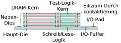 - Prüfung der Schaltung: Um eine hohe Gesamtausbeute zu erzielen und Kosten zu senken, sind getrennte Prüfungen der unabhängigen Teilchips unerlässlich.[15][16] Allerdings bringt die enge Integration zwischen benachbarten aktiven Schichten in einem 3D-IC eine erhebliche Menge an Signalverbindungen zwischen den verschiedenen Teilen des gleichen Stromkreismoduls, das auf verschiedene Teilchips aufgeteilt wurde, mit sich. Abgesehen von dem durch die benötigten Durchkontaktierungen eingeführten, massiven Overhead können die Teile eines solchen Moduls, z. B. ein Multiplikator, nicht unabhängig von konventionellen Techniken getestet werden. Dies gilt insbesondere für zeitkritische Pfade.