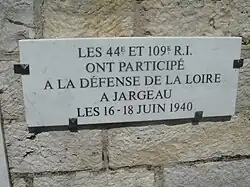 Erinnerungstafel zur Verteidigung der Loirebrücke in Jargeau vom 16. bis 18. Juni 1940 durch das 44e RI und das 109e RI