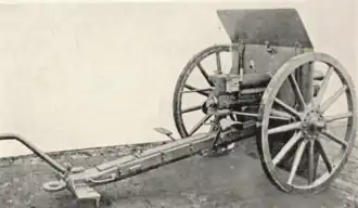 Der Höhenrichtbereich des Kolonialgeschütz lag zwischen −13 und +16,5 Winkelgrad.[1] Zu jeder Seite war ein Richten um 1,5 Winkelgrad möglich, bevor das ganze Geschütz gedreht werden musste. In der Feuerstellung hatte das Geschütz ein Gewicht von 625 kg.[2]
