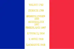 - ↑ n°12350/SGA/DPMA/SHD/DAT du 14 septembre 2007 relative aux inscriptions de noms de batailles sur les drapeaux et étendards des corps de troupe de l'armée de terre, du service de santé des armées et du service des essences des armées, Bulletin officiel des armées, numéro 27, 9 novembre 2007 Arrêté relatif à l'attribution de l'inscription AFN 1952–1962 sur les drapeaux et étendards des formations des armées et services, du 19 novembre 2004 (A) NORDEF0452926A Michèle Alliot-Marie (Bestimmung Nr. 12350/SGA/DPMA/SHD/DAT vom 14. September 2007 regelt die Inschriften auf den Standarten der Truppenkörper des Heeres, des Sanitätsdienstes und des Kraftstoffversorgungsdienstes (Service des essences des armées) neu. Grundlage ist das «Bulletin officiel des armées», numéro 27, 9 novembre 2007