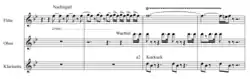 - Anklänge an Vogelgezwitscher (z. B. in T. 46–53 in den Flöten)