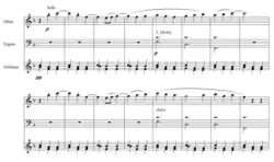 - Bordune (z. B. in T. 1–3 sowie T. 16–25 in den Bratschen und Violoncelli oder in T. 29ff in den Celli und Hörnern)