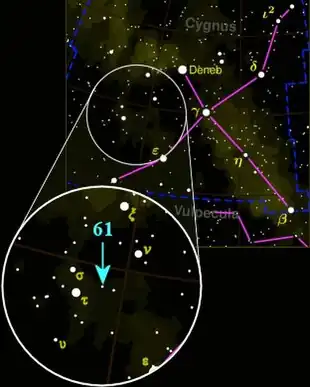 | Lage des Sternsystems 61 Cygni | |||||||||||||||||||||||||||||||||||