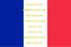 - ↑ Bestimmung Nr. 12350/SGA/DPMA/SHD/DAT vom 14. September 2007 regelt die Inschriften auf den Standarten der Truppenkörper des Heeres, des Sanitätsdienstes und des Kraftstoffversorgungsdienstes (Service des essences des armées) neu. Grundlage ist das Bulletin officiel des armées, Nummer 27, 9. November 2007.