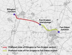 A14 road (englisch für Straße A14) ist eine durchgehend mindestens vierstreifig ausgebaute und mit nummerierten Anschlüssen (junctions) versehene Fernverkehrsstraße in England. Sie beginnt im Osten, zugleich als Teil der Europastraße 30, aber nicht als solche beschildert, mit dem Anschluss 62 in Felixstowe, dem wichtigsten Containerhafen der britischen Inseln, trifft nach rund 11 km beim Anschluss 58 auf die A12 road, mit der sie auf gemeinsamer Trasse die Stadt Ipswich südlich umfährt und dabei den River Orwell quert, trennt sich beim Anschluss 55 wieder von der A12, bildet in ihrem weiteren Verlauf einen Teil der Europastraße 24 und führt in nordwestlicher Richtung an Needham Market und Stowmarket vorbei nach Bury St Edmunds (Anschlüsse 42, 43, 44), weiter nach Westen über Newmarket, vom Anschluss 38 bis zum Anschluss 36 mit der A11 road gemeinsam, nach Cambridge, das nördlich umgangen wird. Beim Anschluss 26 trifft sie auf das nördliche Ende des M11 motorway. Von dort führt sie in westnordwestlicher Richtung nach Huntingdon (südliche Umgehung soll Ende 2020 eröffnet werden), kreuzt die A1 road, passiert Kettering, verläuft ein kurzes Stück zwischen den Anschlüssen 8 und 7 gemeinsam mit der A43 road und zwischen den Anschlüssen 10 und 3 mit der A6 road und geht beim Knoten (Catthorpe Interchange) mit dem M1 motorway in den M6 motorway Richtung Birmingham über.
