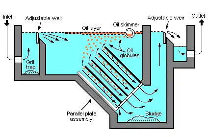 Parallele Plattenseparatoren sind den API-Separatoren ähnlich, beinhalten aber schräge Plattenkomponenten.[2]