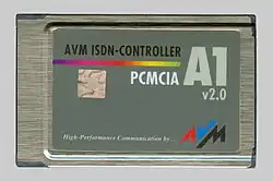 Es gibt auch eine PCMCIA-Version des A1-Controllers, unter dem Produktnamen AVM ISDN-Controller A1 PCMCIA.[2]