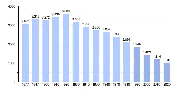 Durch Fortzug in die umliegenden Städte ist die Bevölkerung seit den 1950er Jahren stetig gesunken.