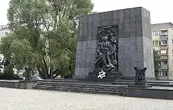 In der Nachfolge von Schönberg entstanden verschiedene Kompositionen, die den Holocaust thematisieren. Dennoch ist die musikalische Auseinandersetzung mit dem Holocaust anders als in der Literatur quantitativ eher ein Randphänomen geblieben und wurde meist von Opfern und Nachfahren betrieben.[70] Die meisten dieser Werke sind wie Schönbergs Überlebender aus Warschau dokumentarisch und textgebunden.[71] Als Beispiel sei Karlheinz Stockhausens elektronische (allerdings den Holocaust nicht direkt ansprechende) Komposition Gesang der Jünglinge im Feuerofen von 1956 genannt.[72] Die 1961 entstandene, von Paul Dessau angeregte deutsch-deutsche Gemeinschaftskomposition Jüdische Chronik von Boris Blacher, Karl Amadeus Hartmann, Hans Werner Henze und Rudolf Wagner-Régeny nach einem Text von Jens Gerlach thematisiert wie der Überlebende aus Warschau den Aufstand im Warschauer Ghetto. Luigi Nono schrieb 1965 die Tonbandkomposition Ricorda cosa ti hanno fatto in Auschwitz (Gedenke dessen, was dir in Auschwitz angetan wurde). Auch Nonos Komposition Il canto sospeso von 1956 ist nachweisbar von Schönbergs Werk beeinflusst.[73] Krzysztof Penderecki schrieb 1967 Dies Irae – Oratorium zum Gedächtnis der Opfer von Auschwitz, welches dort uraufgeführt wurde. Die Deportation der jüdischen Opfer mittels der Eisenbahn regte auch Steve Reich zu seinem 1988 komponierten Werk Different Trains an. In jüngster Zeit entstanden Aribert Reimanns Kumi Ori und Peter Ruzickas (– im Innersten), welche gemeinsam im Jahr 2000 uraufgeführt wurden.