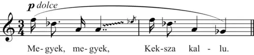Trotz des achtsilbigen Versmaßes des Librettos bevorzugt Bartók in seiner Vertonung 2/4- und 4/4-Takte.[2]