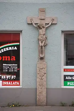 Auf der gegenüberliegenden Straßenseite an der Einmündung Rütger-von-Scheven-Straße steht das denkmalgeschützte Wehrmeisterkreuz, ein Wegekreuz aus dem Jahre 1664.