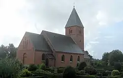 Die Dorfkirche in der Ortsmitte wurde 1897 von Architekt Vilhelm Ahlmann (1852–1928) entworfen. Er hatte bereits den Entwurf für die Frederikshavn Kirke geliefert. Aalbæk Kirke ist im gleichen eklektizistisch-nationalromantischen Stil gestaltet wie Ahlmanns spätere Holstebro Kirke. Bei einer umfassenden Renovierung des Innenraums 1997 erhielten Decke, Kanzel und Kirchengestühl eine maritime blaue Bemalung.