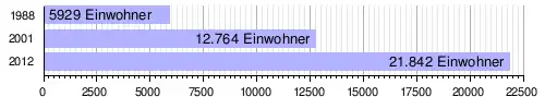 Im Hauptort lebten bei der Volkszählung 2012 21.842 Einwohner in 3467 Haushalten,[2] bei der Volkszählung 2001 12.764 in 2275 Haushalten[6] und bei der Volkszählung 1988 5929 in 1114 Haushalten.[7]