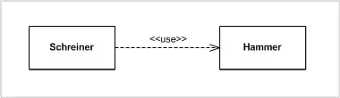 Die Verwendungsbeziehung (Usage) gibt an, dass das abhängige Element das unabhängige Element benutzt. Eine Verwendungsbeziehung wird mit dem Schlüsselwort «use» dekoriert.