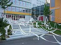 Es kommt ebenfalls vor, dass Teile des Schulgebäudes bzw. -geländes unzugänglich gemacht werden, etwa durch das Anbringen von Absperrband, Luftschlangen, großen Mengen an Luftballons oder ähnliches. Gelegentlich werden auch Unterrichtsgegenstände wie Stühle und Tische aus den Räumen entfernt, damit Barrieren errichtet und ein normaler Unterrichtsablauf von vornherein verhindert.