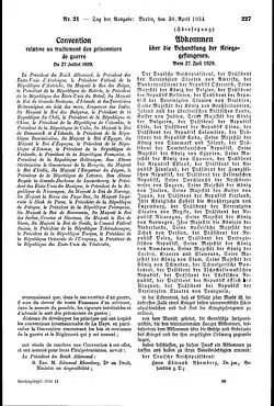 - ↑ Convention relative to the Treatment of Prisoners of War. Geneva, 27 July 1929. In: https://ihl-databases.icrc.org. Abgerufen am 19. September 2025.