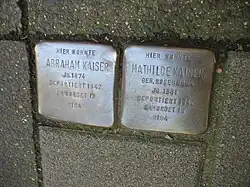 Stolpersteine erinnern in der Duisburger Mainstraße 15 an Abraham Kaiser und Mathilde Kaiser.[3]