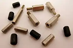 Die Bolzen werden mit unterschiedlichen Gewindearten wie Innen-/Außengewinde oder Innen-/Innengewinde und verschiedenen Schlüsselweiten (SW) angeboten. Sie kommen beispielsweise im Trafo- und Gerätebau, in der Messtechnik oder in Schaltschränken zum Einsatz und werden je nach Kundenwunsch und Einsatzbereich aus Messing, Aluminium, Kunststoff (z. B. Polyamid) oder Edelstahl hergestellt.