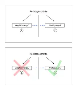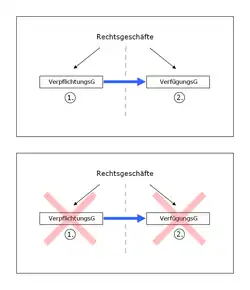 Das Abstraktionsprinzip beruht auf dem Prinzip der Trennung des schuldrechtlichen Kausalgeschäfts vom sachenrechtlichen abstrakten Geschäft. Die rechtlichen Bestände der beiden Geschäftstypen sind voneinander unabhängig.[2][3]