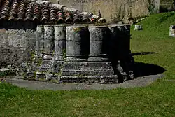 Das kristallklare Wasser des Quellbaches Fontdouce durchfließt das Gebäude, hier im Kapitelsaal ohne Abdeckung. Man wird erinnert an keltische Quellheiligtümer. Gehen die Gründung und der Name vielleicht auf ein solches zurück?