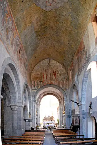 Die Wände oberhalb der Arkadenbögen und das Gewölbe des Hauptschiffs sind üppig mit Fresken bemalt (siehe separaten Abschnitt).