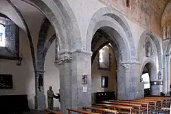 Im Seitenschiff stehen eine Pietà aus dem 16. Jahrhundert flankiert von zwei Heiligenskulpturen und Skulpturen Johannes des Täufers mit seinem Lamm und des heiligen Andreas an einem X-förmigen Kreuz, Andreaskreuz genannt.