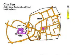 Im Vergleich zu anderen Klöstern der Benediktiner oder Cluniazenser fällt auf, dass sich rund um St-Fortunat eine Siedlung gebildet hat, die auch nach dem Absinken der Bedeutung Clunys weiter wuchs. Denkt man an Semur-en-Brionnais oder an Anzy-le-Duc, so war dort nach dem 12. Jh. Stagnation eingetreten. Charlieu blieb jedoch im 13. und 14. Jahrhundert wirtschaftlich wie militärisch bedeutend.