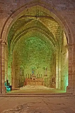 Die Abteikirche wurde, wie üblich, auf dem höchsten Punkt des Klosters errichtet. Sie entspricht dem traditionellen Grundriss in Form eines lateinischen Kreuzes.[9]