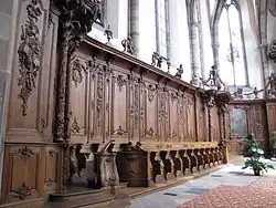 Der heutige Chor stammt von 1761 bis 1767. Er ersetzte einen gotischen und wurde in barocker Nachgotik errichtet.[2] Nach Abschluss dieser Arbeiten wurde der Chor 1770 mit einem herausragenden Chorgestühl ausgestattet.[6]