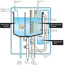 - ↑ Abdur Rehman Mazhar et al.: A Key Review of Non-Industrial Greywater Heat Harnessing. In: Energies. Band 11, 2018, S. 386, doi:10.3390/en11020386.