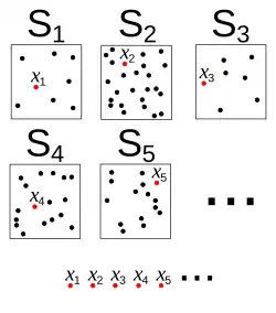 - Offensichtlich enthält jedes zwischen einem und Elementen und die sind disjunkt. Eine weitere Anwendung von ACω liefert eine Folge , wobei ist.