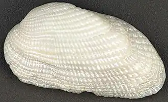 Die Schale ist vergleichsweise dick, und das Gehäuse ist vergleichsweise schwer. Das Periostracum ist sehr dünn und hinfällig. Die Ornamentierung besteht aus feinen, aber rauen radialen Rippen und feinen konzentrischen Rippen, auch etwas dachziegelartig ausgezogen sein können. Die Kreuzungspunkte der radialen und konzentrischen Rippen sind oft gezähnelt.