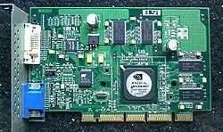 Accelerated Graphics Port (kurz AGP oder A.G.P.) ist ein Industriestandard zur direkten Verbindung einer Grafikkarte mit der Hauptplatine eines PCs. AGP wurde 1996 von Intel eingeführt.[1] Ab 2003 wurde er sukzessive durch PCI Express abgelöst.