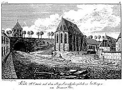 - ↑ Vgl. Günter Beer: Paulinerkloster mit altem Gymnasium, Barfüßerkloster, Hospital St. Crucis in Göttingen und deren Umgebungen. In: Göttinger Jahrbuch, Bd. 32, 1984, S. 71–98, hier S. 92 ff., auf S. 92. Abb. 8 ein Hospital-Lageplan von 1782, dort bezeichnet als „Acuchement“.