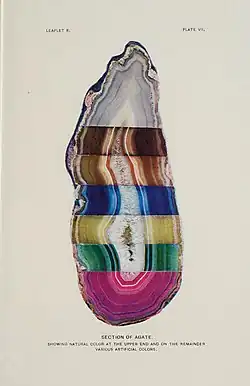 Dem modischen Geschmack folgend wird der Achat in der Schmuckindustrie häufig gefärbt, wobei man ausnutzt, dass einige, aber nicht alle der einzelnen Lagen des Steins porös genug sind, um Flüssigkeiten aufzusaugen.