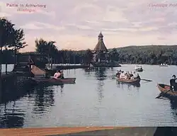 „Auf einer Insel in den Ruderteichen wurde ein herrlicher Pavillon und auf einem etwa 140 Meter hohen Berge an der äußersten Grenze des Besitztums ein zirka 30 Meter hoher Aussichtsturm errichtet, von dem man einen weiten Ausblick über die ganze Südheide hat. … Der landwirtschaftliche Betrieb des Gutshofes sorgt für gute und stets frische Verpflegung. … So bietet der Luftkurort Achterberg mit seiner nächsten Umgebung in landschaftlicher Hinsicht reichlich Abwechslung. Dagegen fragt man hier nach Kaffee- und Konzerthäusern sowie Promenadenkonzerten und ähnlichen Veranstaltungen vergeblich.“