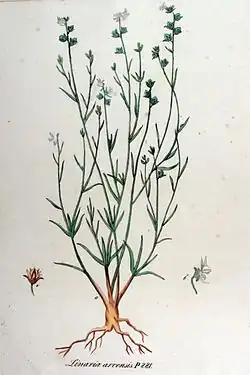 - ↑ a b c d e f g h i j k l m n o p q r s t u Linaria arvensis (L.) Desf., Acker-Leinkraut. auf FloraWeb.de
